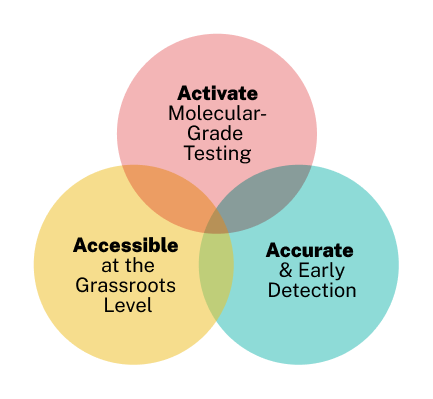 TBFYND addresses these critical challenges of TB diagnosis with a groundbreaking Triple-A Solution, built to revolutionize testing accuracy on a large scale. Our approach is centered on three core pillars: Activating cutting-edge Molecular-grade Testing, ensuring widespread Accessibility, and delivering Accurate, Early Detection. This is how we are transforming the fight against TB from the ground up.
